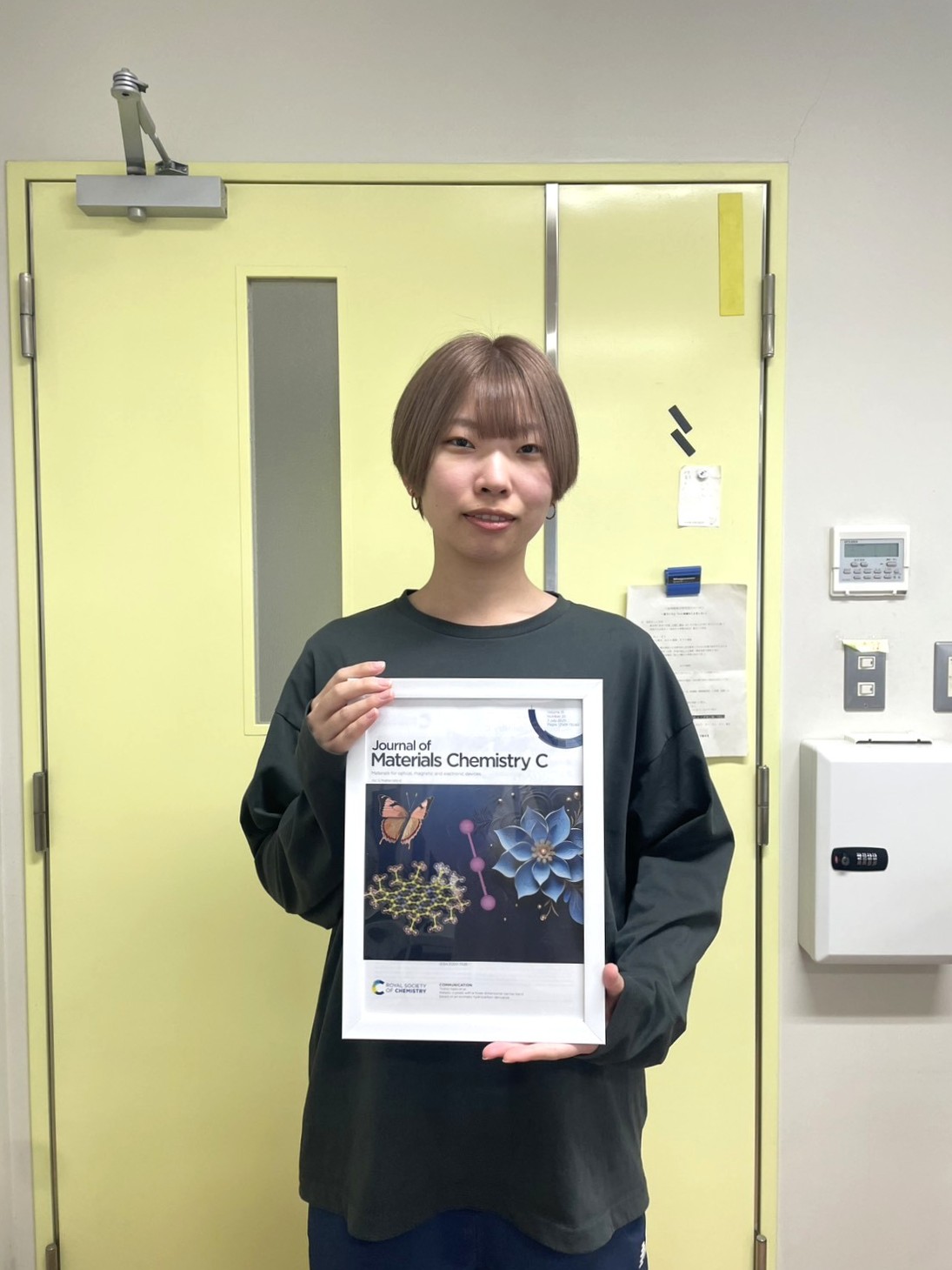 これは前年(2025年)から2026年1月現在までに、RSCの材料系の特に注目されている5つの雑誌(Journal of Materials Chemistry A, 同B, 同C, Materials Advances 及び Materials Horizons)に掲載された論文の中から、編集委員の推薦や審査意見、ダウンロード数など、客観的なインパクトを基に選ばれた論文の著者の中から選ばれました。大学院生、しかも博士前期課程の学生が選ばれることは異例で、愛媛大学の材料科学研究の可能性や強みを、女性が活躍している大学であるということと、ともに世界に向けて発信したことになります。